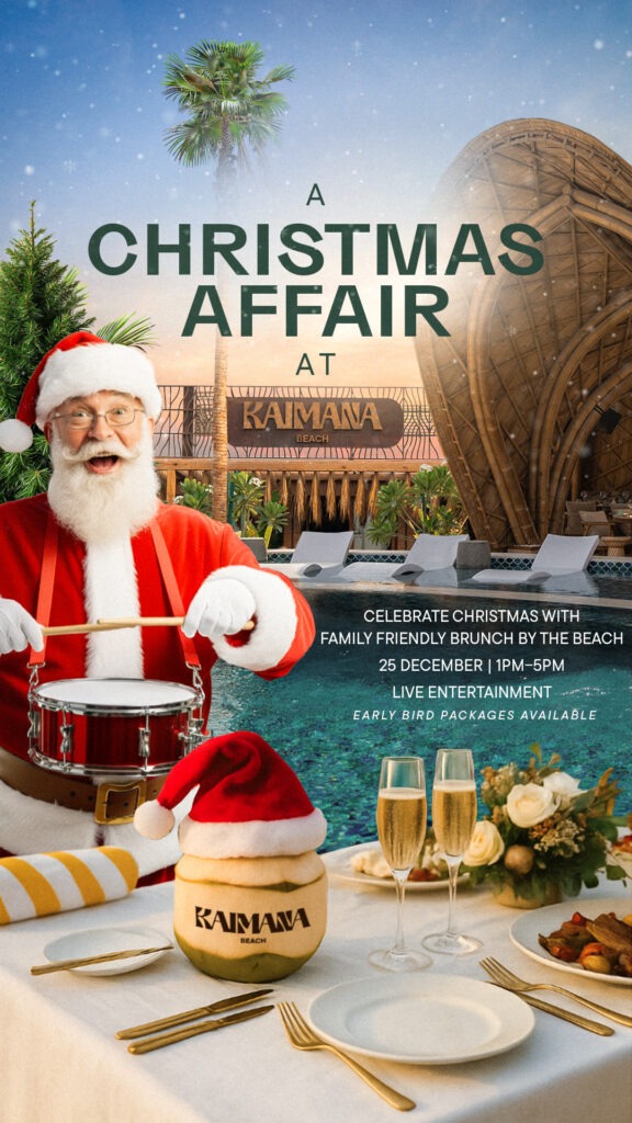 The infectious energy at Kaimana Beach is further fueled by live music and resident DJs. During the day, guests can enjoy a mix of chilled island lounge beats, while the evening brings live sundowners and upbeat beach vibes, continuing the scene after sunset.